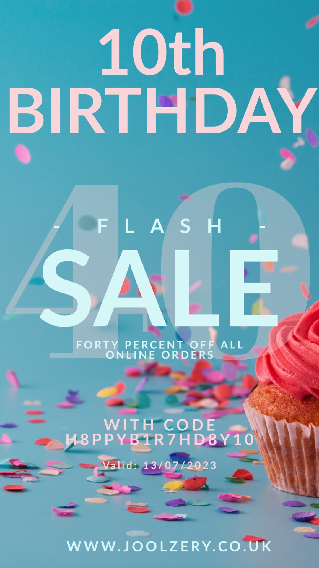 To celebrate Joolzery turning 10 years old I am holding a one day 40% off flash sale on today, Thursday 13th July 2023!!!
