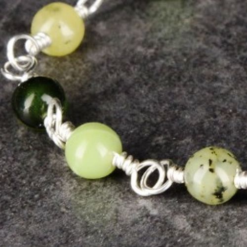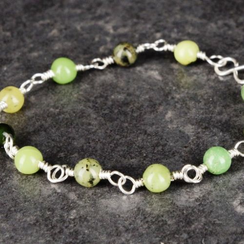 Handmade sterling silver wire wrapped Chrysoprase bracelet