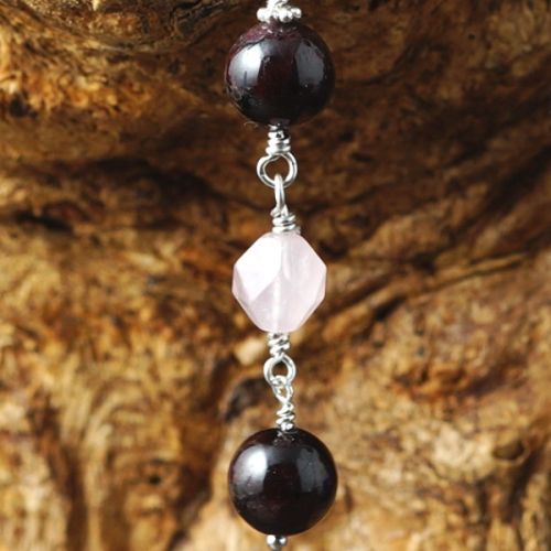 Beads: 8mm Garnet rounds and 8mm facted Rose Quartz diamonds
