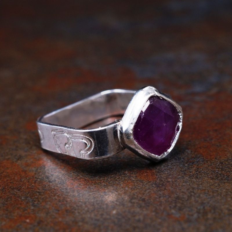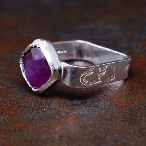Handcrafted Pink Sapphire Stamped Sterling Silver Square Ring