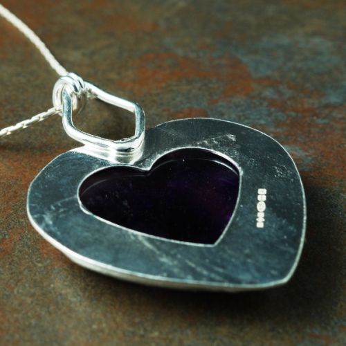 Handmade Tripache Heart Amethyst Sterling Silver bezel set cut out pendant