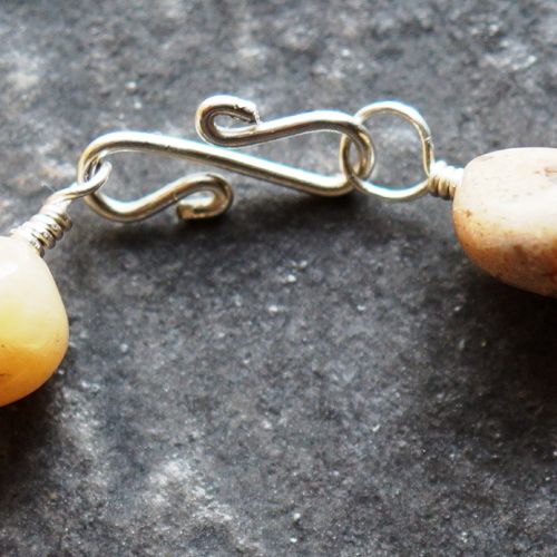 Handmade sterling silver wire wrapped Opal Bracelet, finished with a handmade sterling silver S hook.