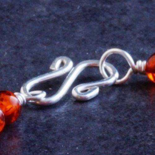 Handmade sterling silver wire wrapped Amber bracelet, finished with handmade sterling silver S hooks.