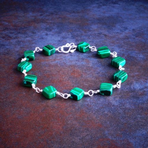 Handmade sterling silver wire wrapped Malachite bracelet, finished with a handmade sterling silver S hook.